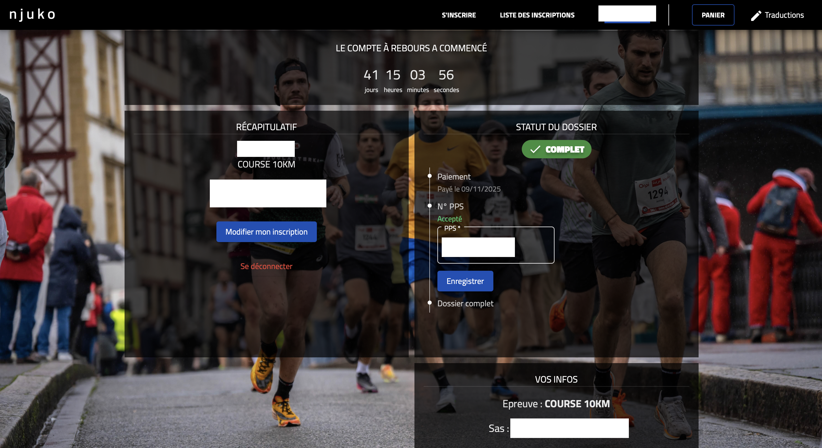 – je me connecte à mon Espace Coureur. Le lien est dans le mail de confirmation que j’ai reçu après m’être inscrit(e),